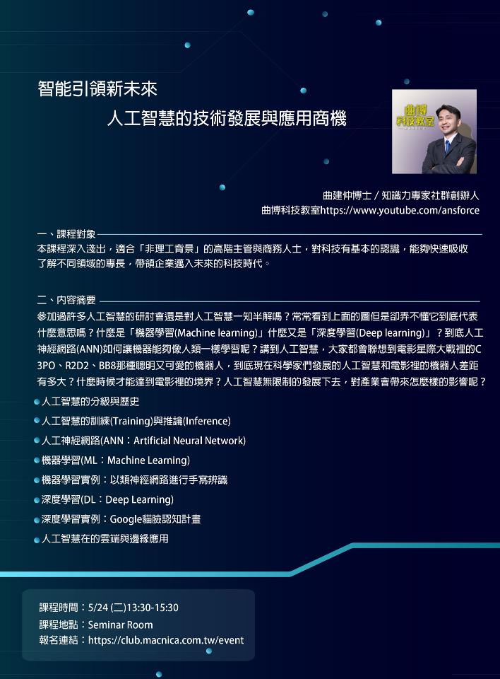 參加過許多人工智慧的研討會還是對人工智慧一知半解嗎?常常看到上面的圖但是卻弄不懂它到底代表什麼意思嗎?什麼是「機器學習(Machine learning)」什麼又是「深度學習(Deep learning)」?到底人工神經網路(ANN)如何讓機器能夠像人類一樣學習呢?講到人工智慧,大家都會聯想到電影星際大戰裡的C3PO、R2D2、BB8那種聰明又可愛的機器人,到底現在科學家們發展的人工智慧和電影裡的機器人差距有多大?什麼時候才能達到電影裡的境界?人工智慧無限制的發展下去,對產業會帶來怎麼樣的影響呢?